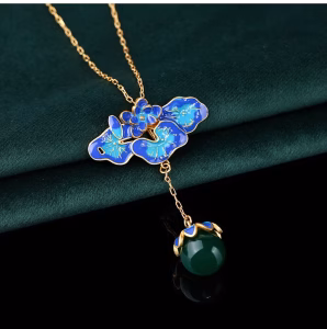 Be the first to review “Chinese blue pendant light luxury enamel high sense necklace”