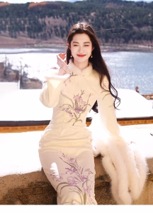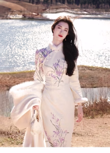Be the first to review “[Menghan]梦涵Chinese style cheongsam patchwork hairy sleeve dress”