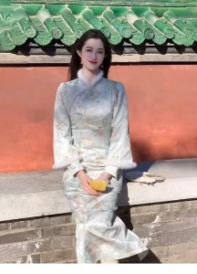Be the first to review “[Tongjun]桐君Chinese cheongsam woolen sliver splicing dress long skirt”