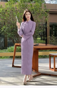 [Wenci]温辞New Chinese Jacquard Cheongsam Skirt Women’s Retro Waist Collection Long Dress