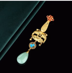 Years of fish Fu Lu Chinese Hanfu high-grade fringe retro makeup with pressure lapel brooch